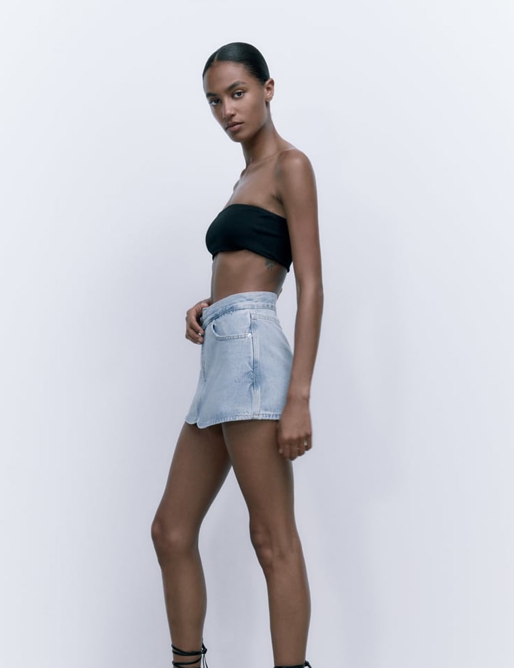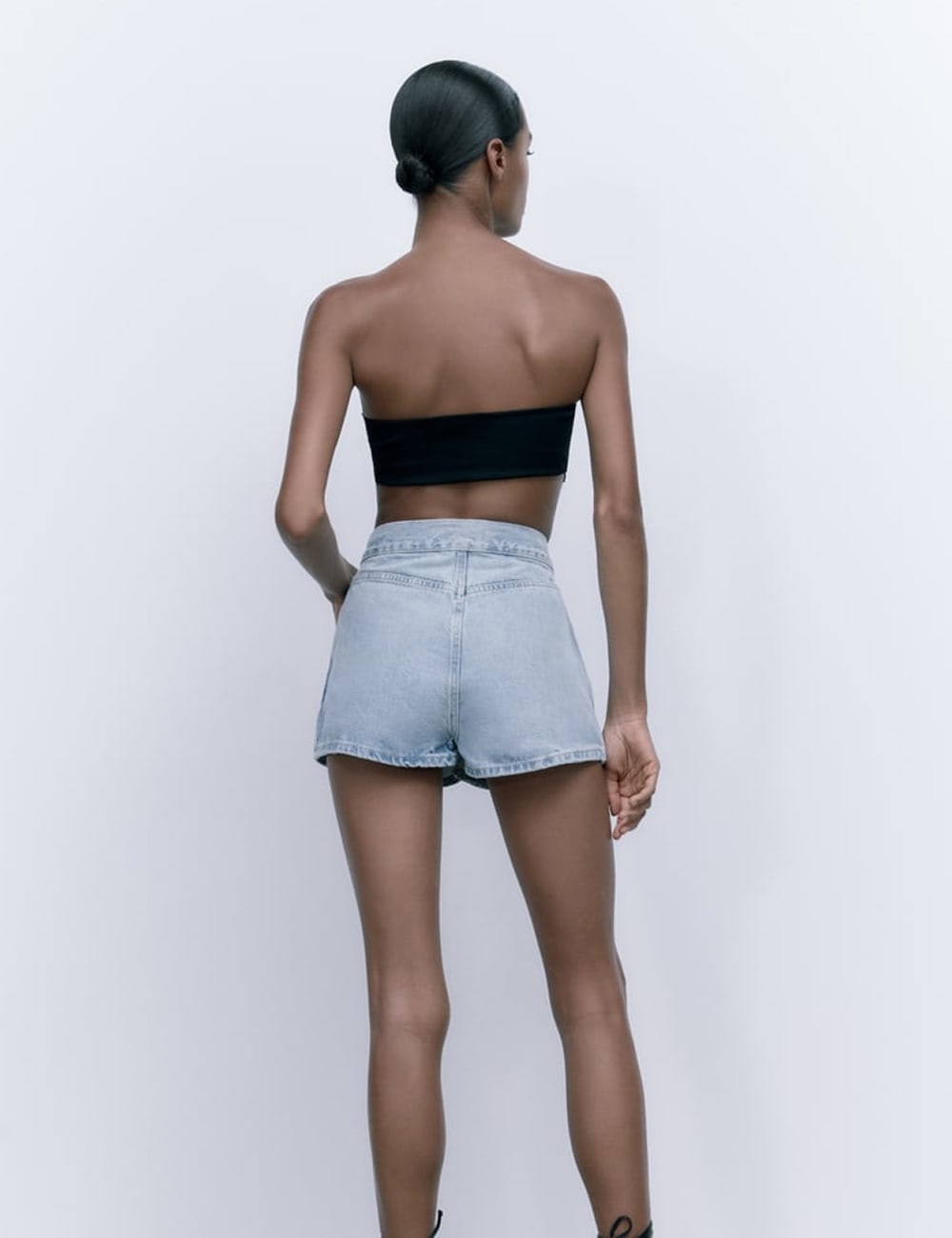 Cotton-blend fabric. Textured fabric. Long design. Evasé design. Wrap collar. Puffed short sleeve. Front slit. Knot detail. Bow closing on the back.