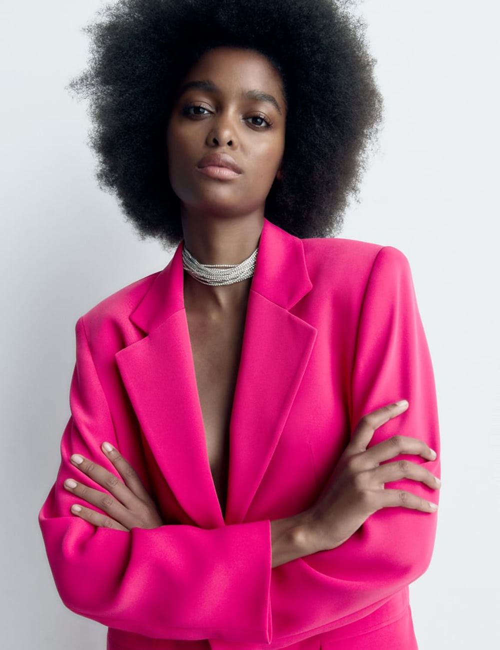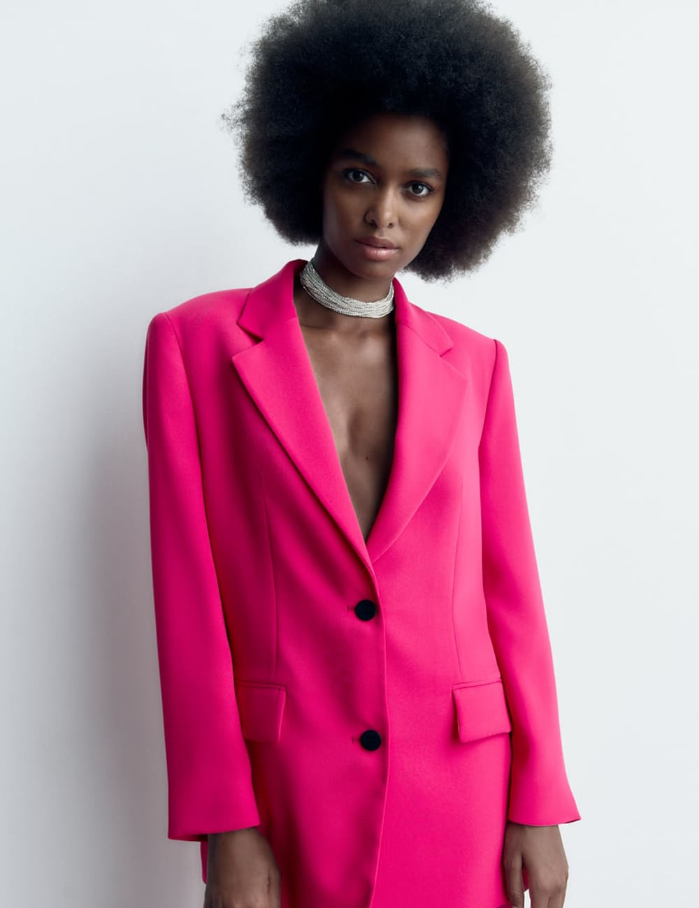 Cotton-blend fabric. Textured fabric. Long design. Evasé design. Wrap collar. Puffed short sleeve. Front slit. Knot detail. Bow closing on the back.
